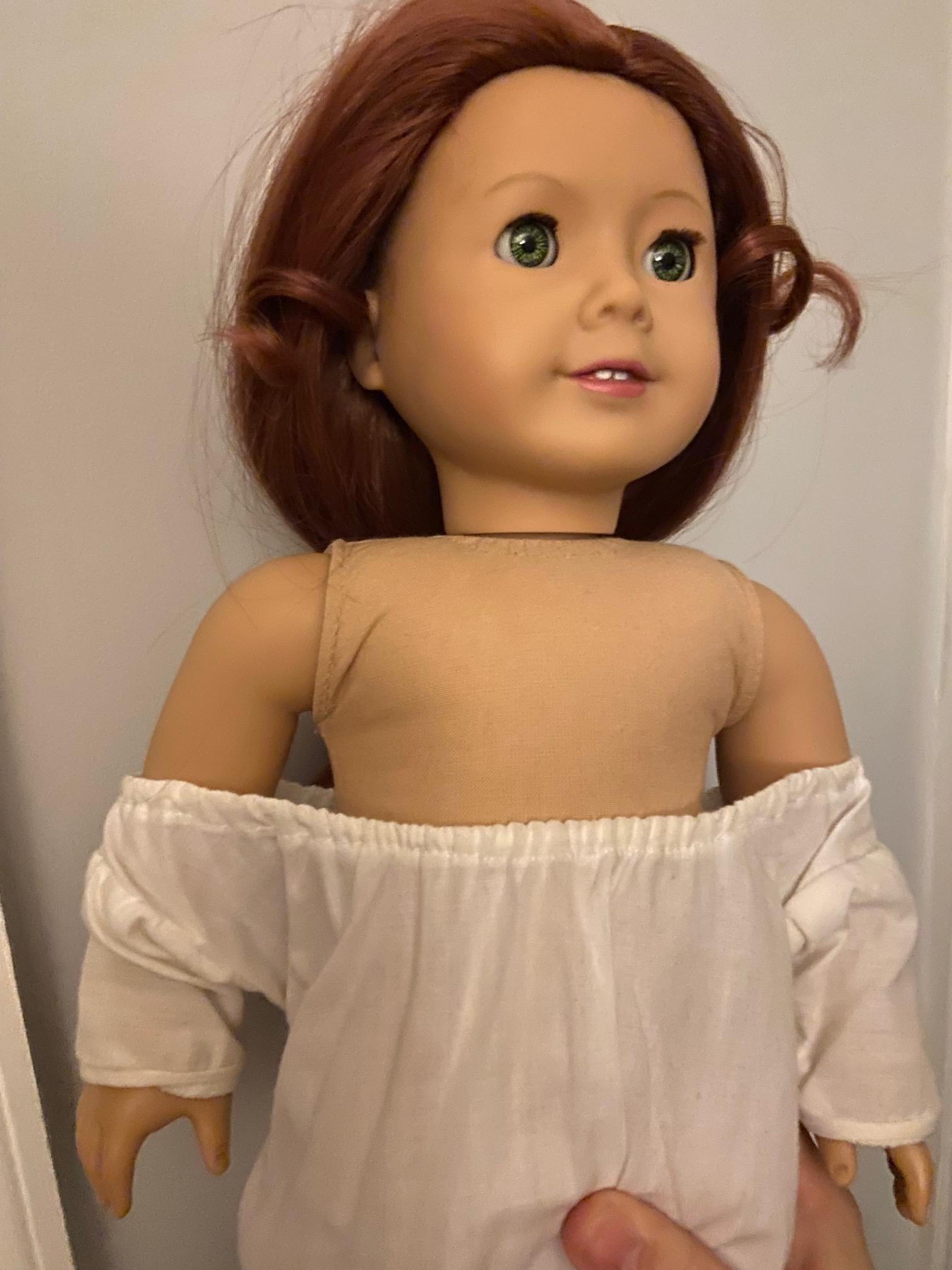 I've had an American Girl Felicity doll since I was a kid in the early 90s. Unfortunately, time took its toll on her. Her hair was so matted that I needed to replace her wig, her original socks got moth-eaten and had to be replaced, and her shift....well.